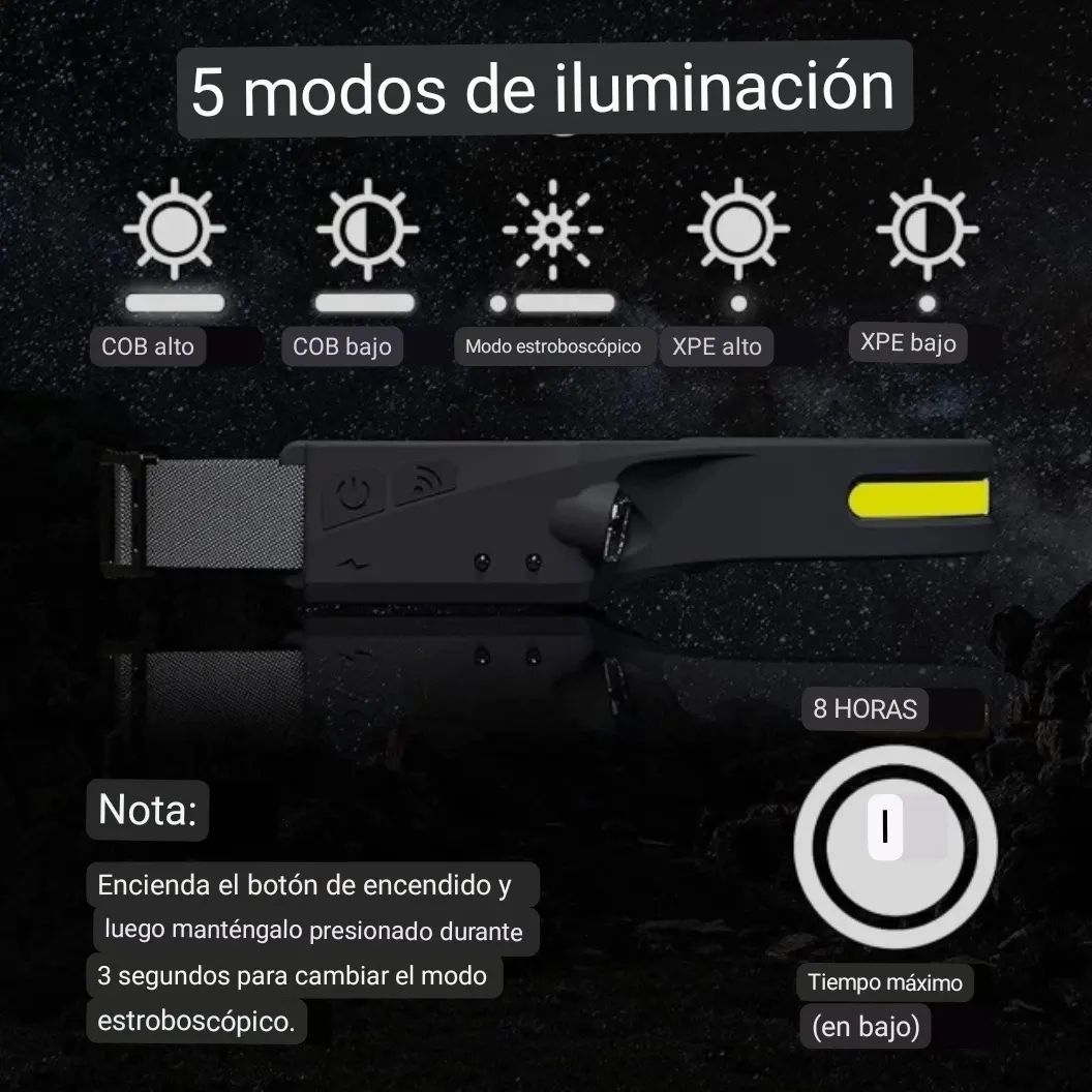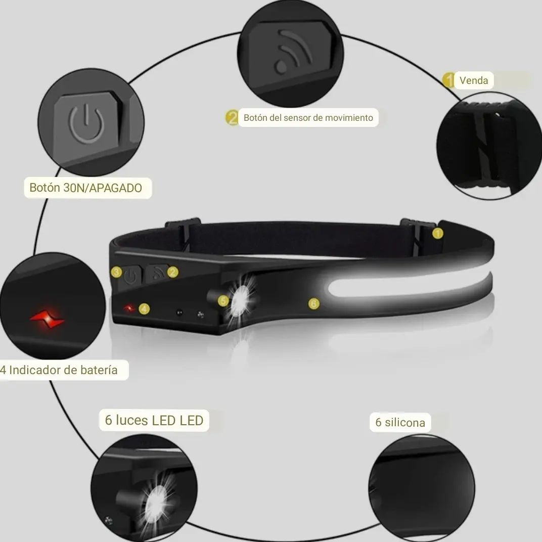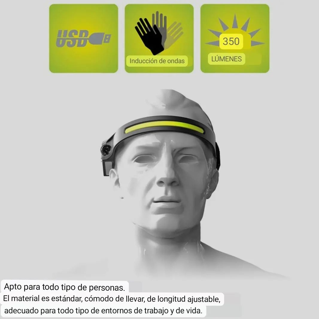 Ilumina cada paso con la comodidad que mereces. La HaloBeam 350° combina potencia, ligereza e inteligencia en una sola linterna frontal. Gracias a su diseño flexible y su sensor de movimiento, enciende o apaga la luz con solo pasar la mano, ideal para trabajos, camping, ciclismo, senderismo o emergencias. Con su doble iluminación COB + XPE tendrás una visión amplia y nítida sin puntos ciegos.