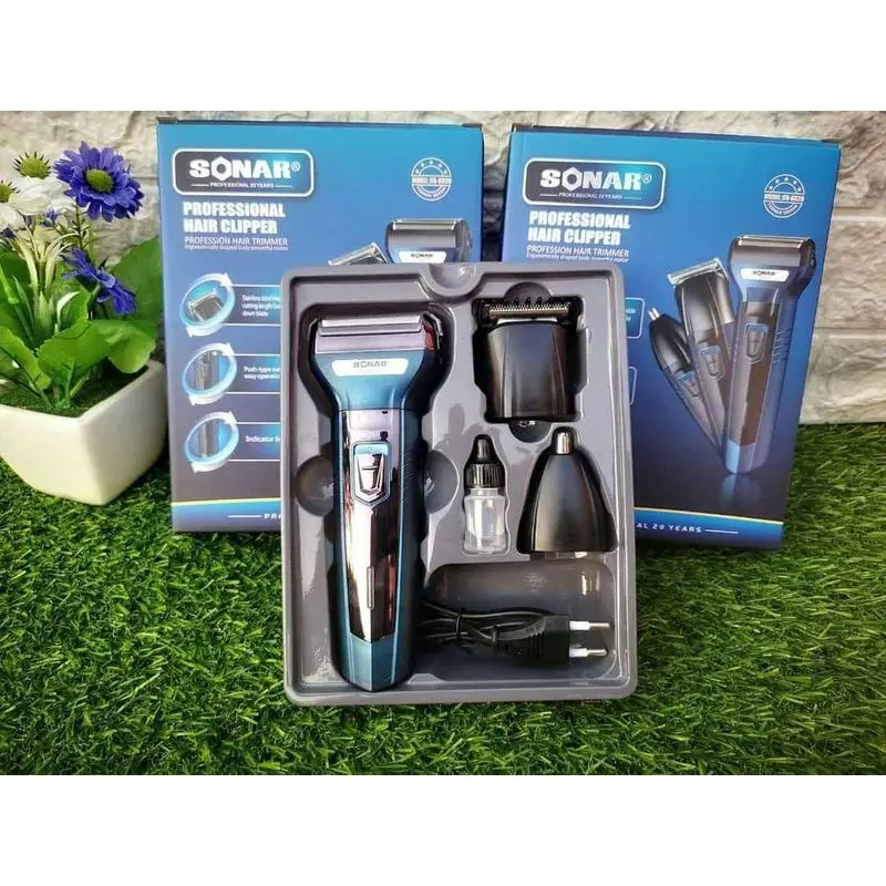Incluye:1 Máquina cortadora SONAR, 3 cabezales intercambiables, 1 cable de carga,1 cepillo de limpieza,Manual de uso